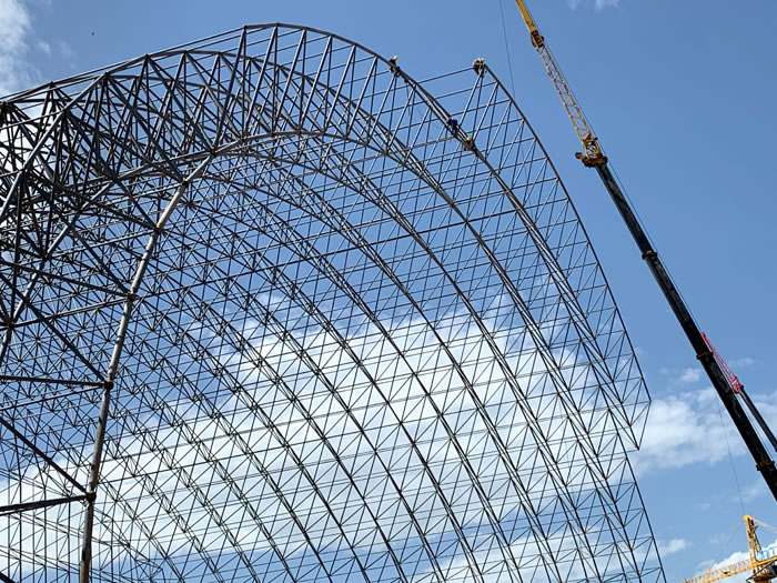 (2)网架加工前应对现场尺寸进行复测,确认无误后方可进行加工、安装;网架制作、运输、安装应遵守《空间网格结构技术规程》JGJ7-2010、《钢网架高平螺栓球节点》JG/T 10-2009、《钢网架高平螺栓球节点用高强度螺栓》 GB/T 16939-2016、《高平钢结构高平工程高平施工规范》 GB50755-2012、《高平钢结构高平工程施工质量验收标准》 GB50205-2020。